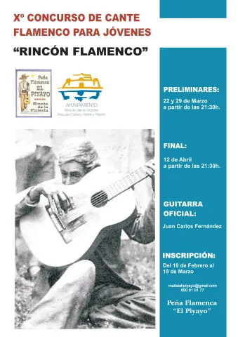 Rincón de la Victoria, 21 de marzo de 2025: La Concejalía de Cultura del Ayuntamiento de Rincón de la Victoria junto a la Peña El Piyayo han anunciado el inicio del X Concurso de Cante Flamenco para Jóvenes `Rincón Flamenco´.