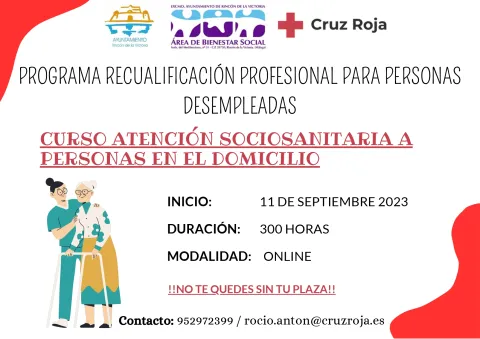 La Concejalía de Bienestar Social del Ayuntamiento de Rincón de la Victoria ha informado de la celebración de un nuevo curso de capacitación profesional de atención sociosanitaria a personas en el domicilio.
