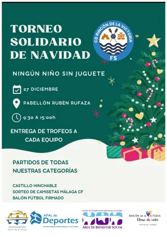 El Ayuntamiento de Rincón de la Victoria celebrará el próximo 27 de diciembre el Torneo Solidario de Navidad `Ningún niño sin juguete´ que tendrá lugar en el Pabellón Cubierto Municipal Rubén Ruzafa de Torre de Benagalbón.