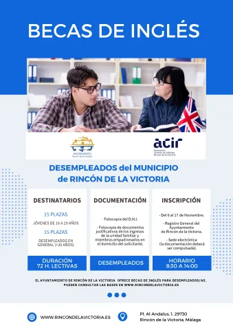 El Ayuntamiento de Rincón de la Victoria ha informado de la convocatoria de 30 becas del programa de acciones formativas en inglés para personas desempleadas y empadronadas en el municipio, cuyo plazo de inscripción permanecerá abierto desde el 6 hasta el 17 de noviembre.
