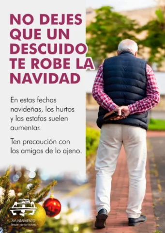 Rincón de la Victoria, 23 de diciembre de 2024.- El Ayuntamiento de Rincón de la Victoria, desde sus áreas de Seguridad Ciudadana y Mayores, ha lanzado una campaña informativa para alertar sobre el incremento de hurtos y timos coincidiendo con estas fiestas navideñas.