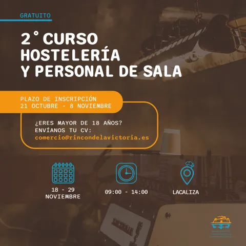 La Concejalía de Comercio del Ayuntamiento de Rincón de la Victoria abre hoy el plazo de inscripción del segundo curso gratuito de `Iniciación a la hostelería y personal de sala´.