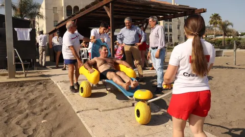 El servicio de baño adaptado, impulsado por la Concejalía de Playas en colaboración con Cruz Roja, atenderá este verano a más de 300 personas.