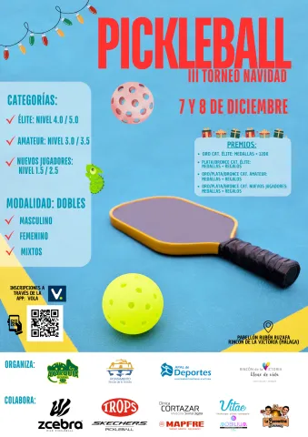 El III Torneo de Pickleball comenzará el 7 de diciembre a las 9:00 horas en las modalidades de dobles masculino y femenino. El día 8 de diciembre los deportistas competirán en la modalidad de dobles mixtos y la nueva categoría de nivel 1.5 y 2.5.
