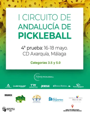 Rincón de la Victoria, 14 de mayo de 2025 El Pabellón Rubén Ruzafa de Torre de Benagalbón acogerá este fin de semana, del viernes 16 al domingo 18, la cuarta prueba puntuable de la primera edición del Circuito de Andalucía de Pickleball.