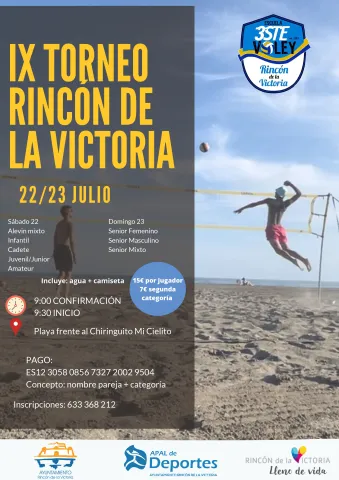 Rincón de la Victoria celebrará el IX Torneo Voley Playa los días 22 y 23 de julio con la participación de 300 jugadores procedentes de distintas provincias andaluzas.