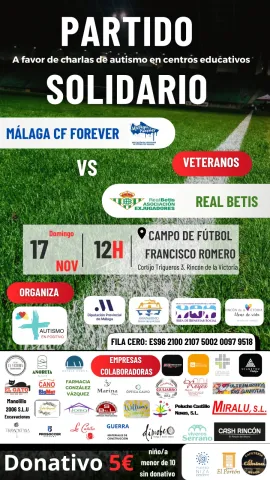 Rincón de la Victoria celebrará el domingo 17 de noviembre un partido solidario entre los veteranos del Málaga CF Forever y exjugadores del Real Betis organizado por la asociación Socio-Cultural Autismo en Positivo y la colaboración de las Concejalías de Bienestar Social y Turismo del Ayuntamiento.