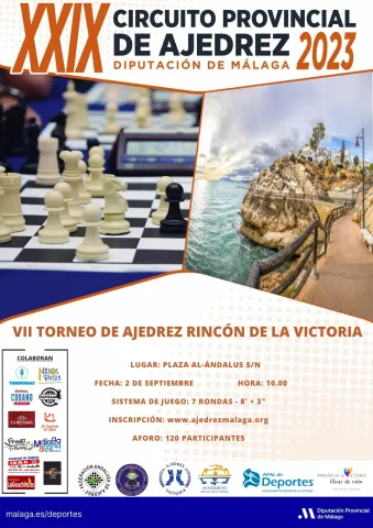 Ya están abiertas las inscripciones en la siguiente dirección web: https://www.ajedrezmalaga.org/circuito-diputacion/2023/8/2/vii-torneo-de-ajedrez-rincon-de-la-victoria