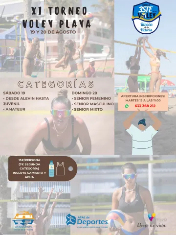 El evento, organizado por 3SET Voley Rincón de la Victoria y el Área de Deportes del Ayuntamiento, reunirá a deportistas y aficionados a partir de los diez años que competirán en las categorías desde alevín hasta juvenil, amateur y senior masculino, femenino y mixto.