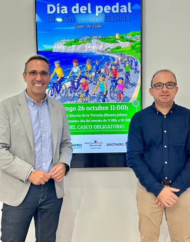 Rincón de la Victoria, 09 de octubre de 2025. El municipio de Rincón de la Victoria recupera el Día del Pedal que se celebrará el próximo domingo 26 de octubre. Así lo ha anunciado el concejal de Deportes, Antonio José Martín (PP), en la rueda de prensa que ha ofrecido hoy junto a José Manuel Roldán, presidente del Club Ciclismo Brothers Bike, colectivo que organiza conjuntamente con el consistorio la actividad.