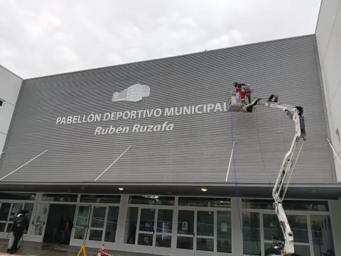 El edil ha explicado que los trabajos de limpieza y pintura de la fachada principal del pabellón Rubén Ruzafa eran necesarios, así como el pintado de fachada. Además, se ha realizado la sustitución de pieza de unión de canalón y bajante mediante emboquillado metálico y piezas accesorias de montaje.