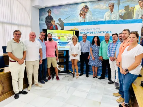 El alcalde de Rincón de la Victoria, Francisco Salado (PP), ha presentado hoy la programación de actividades de la Fiesta del Boquerón Victoriano junto al concejal de Turismo de Rincón de la Victoria, Antonio José Martín (PP), la concejala de Comercio, Lola Ramos (PP), y donde también han estado presentes miembros de la Asociación de Comerciantes y Empresarios de Rincón de la Victoria (ACERV), cocineros y representación de entidades colaboradoras.