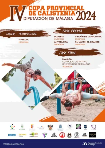 Rincón de la Victoria será sede de la fase previa de la IV Copa Provincial de Calistenia organizada por la Diputación de Málaga. La jornada transcurrirá el próximo 20 de abril en la pista deportiva de calistenia de la playa de Rincón de la Victoria a la altura del arroyo Granadillas.
