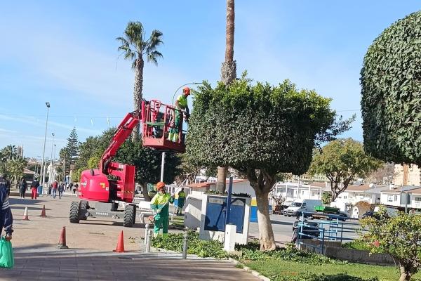 El Ayuntamiento de Rincón de la Victoria continúa avanzando en los trabajos de poda de los árboles del municipio.