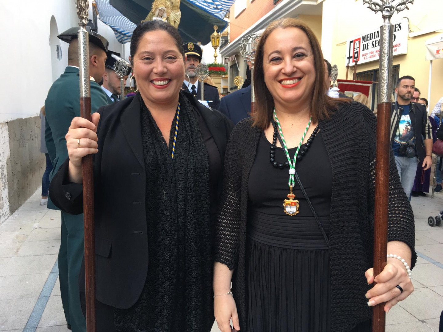 Encarni Anaya y Yolanda Florido acompañaron a los titulares en el desfile procesional de la Cofradía de Rincón de la Victoria con motivo de la Semana Santa.
