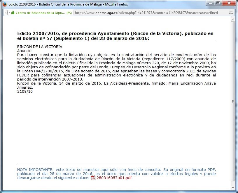 Con el fin de dar cumplimiento a la Ley 11/2007, de 22 de junio, de acceso electrónico de los ciudadanos a los Servicios Públicos, y para impulsar el desarrollo e implantación de la Sociedad de la Información en los servicios públicos para la ciudadanía y las empresas de Rincón de la Victoria, se ha puesto en marcha un gran proyecto de administración electrónica que contempla las actuaciones necesarias para garantizar la evolución hacia un modelo de administración digital.