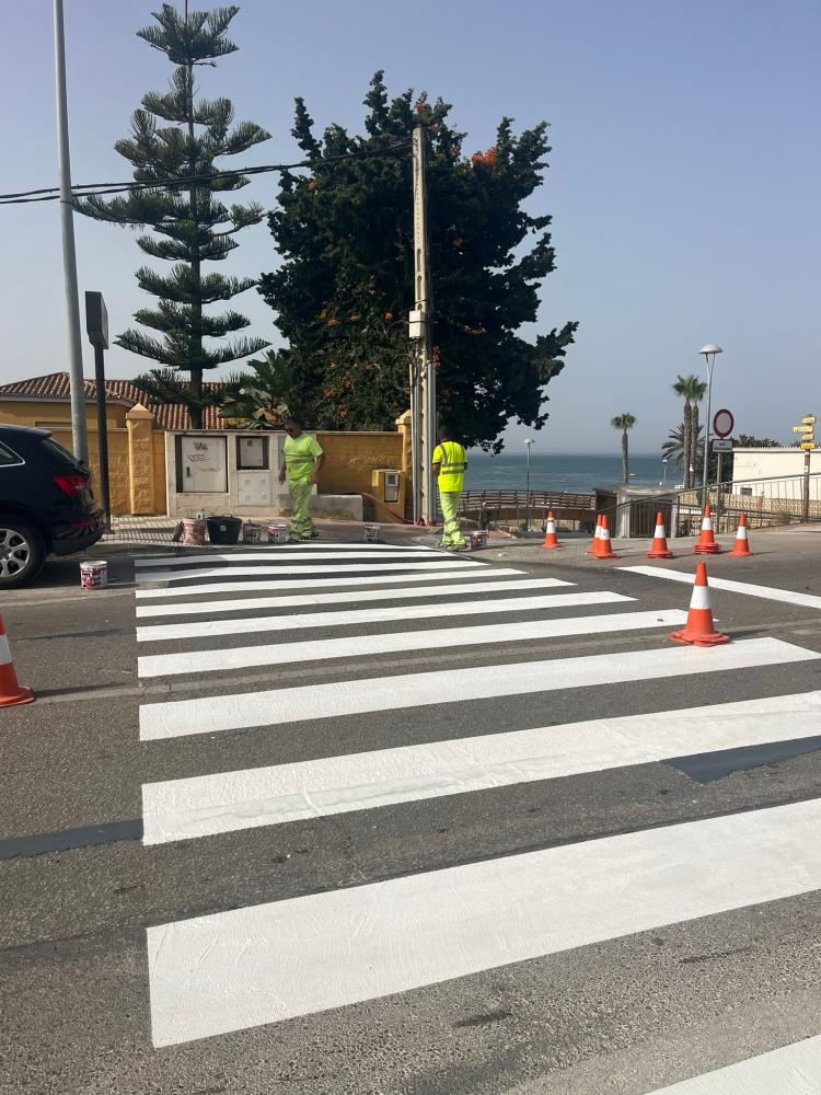 - Señalización horizontal con pintura de dos componentes en frío para los pasos de peatones antes indicados.