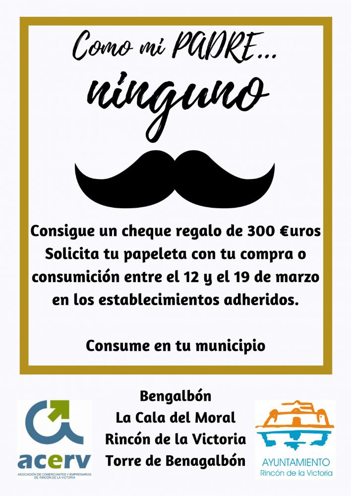 La Concejalía de Comercio del Ayuntamiento de Rincón de la Victoria y la Asociación de Comerciantes y Empresarios (ACERV) ponen en marcha una nueva campaña de promoción del comercio local con motivo de la celebración del Día del Padre que se desarrollará del 12 al 19 de marzo con la participación de más de un centenar de establecimientos del municipio.