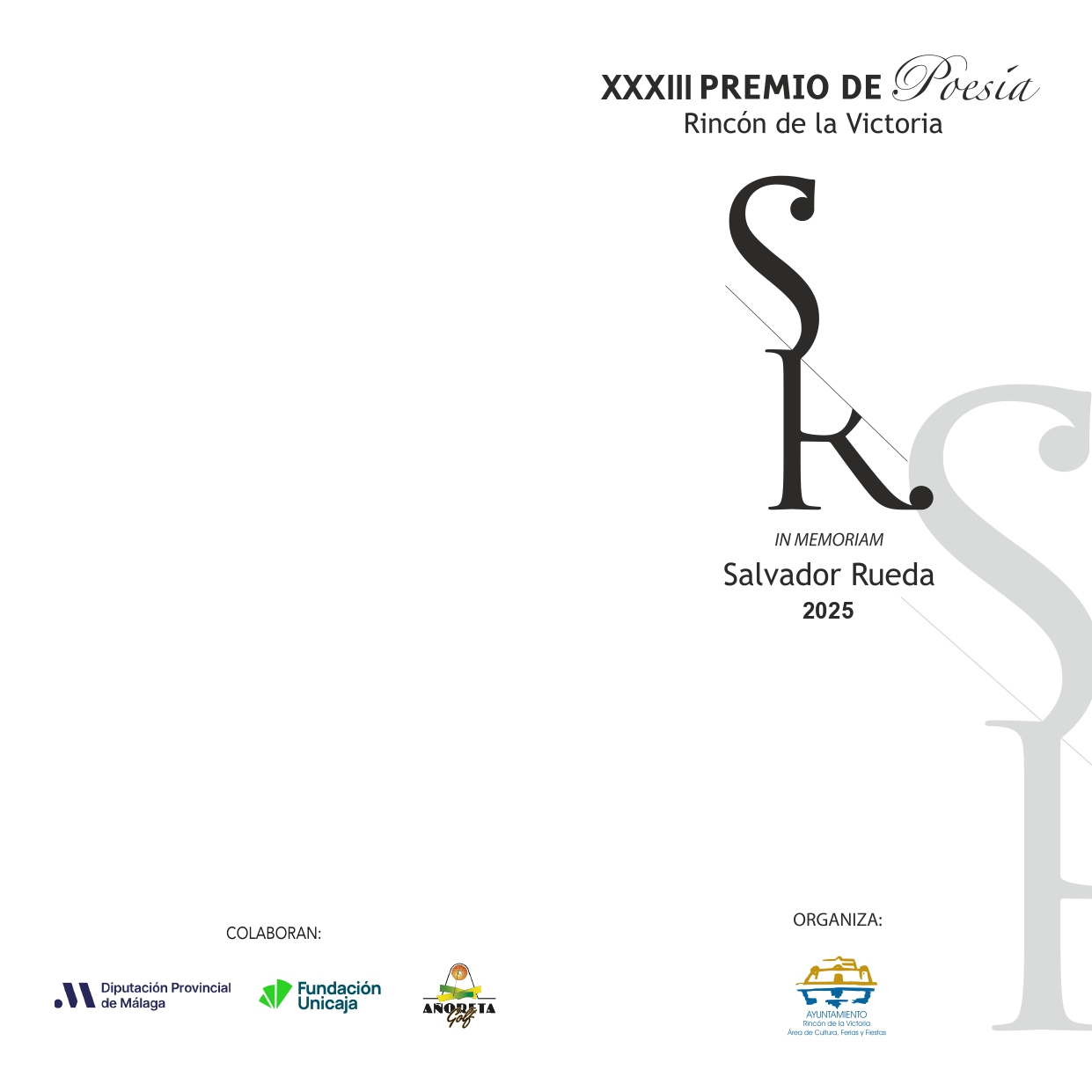 La Concejalía de Cultura del Ayuntamiento de Rincón de la Victoria ha hecho públicas hoy las bases de la convocatoria del XXXIII Premio de Poesía Rincón de la Victoria, in memoriam Salvador Rueda, dotado con un premio único de 3.000 euros.