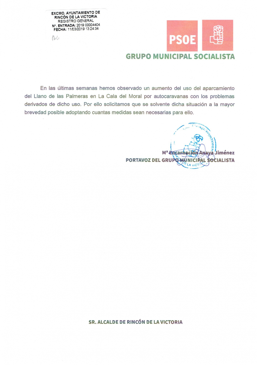 Ante las quejas vecinales hemos solicitado que se solvente el problema que se genera en el aparcamiento del Llano de las Palmeras a causa de las autocaravanas.