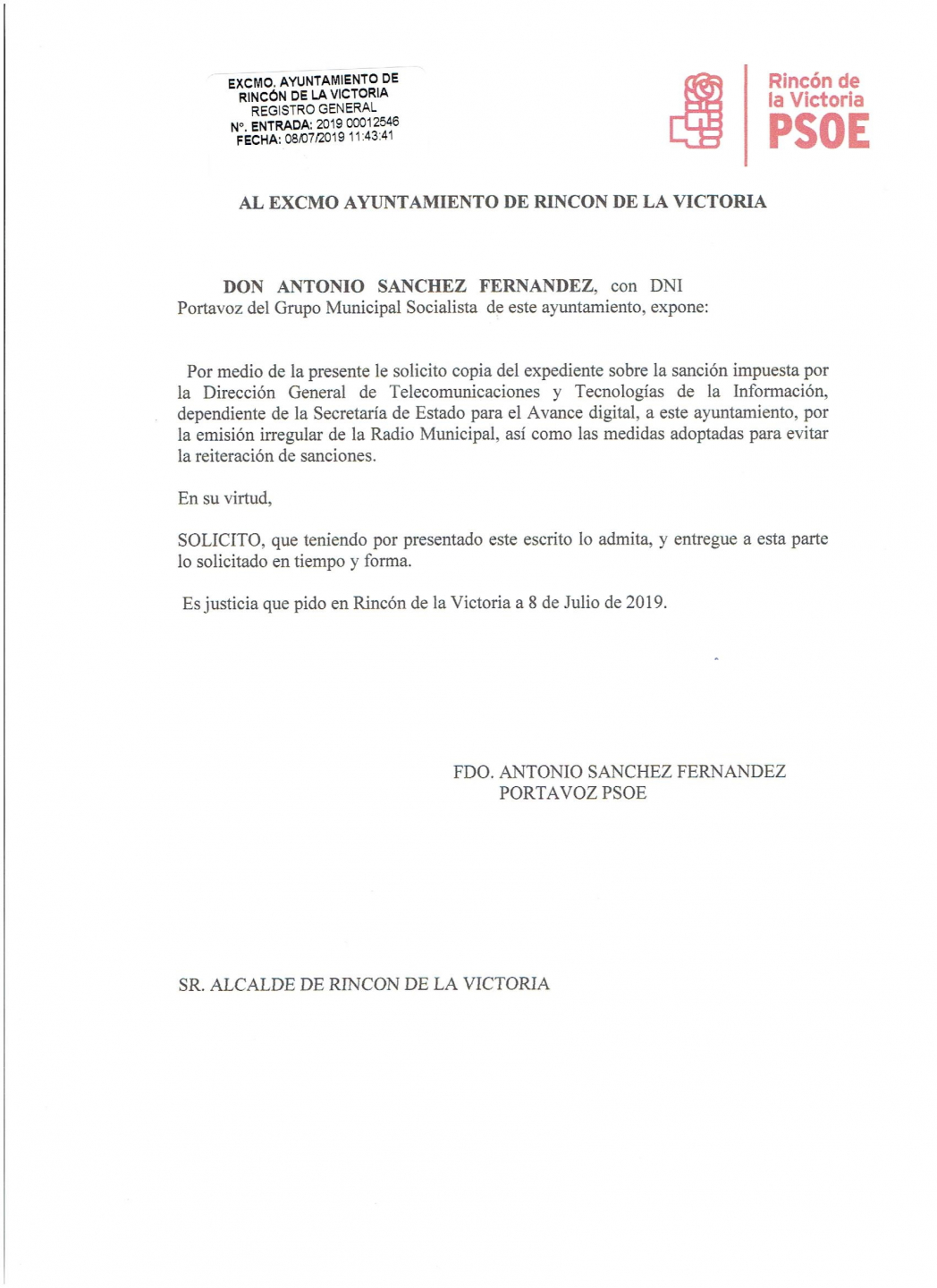 Expediente sobre sanción impuesta al Ayuntamiento por emisión irregular de la Radio Municipal