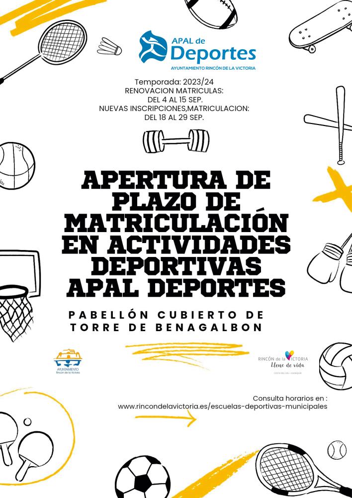Apertura del plazo de matriculación en las Escuelas Municipales y Concertadas del APAL Deportes para la próxima temporada 2023/2024.