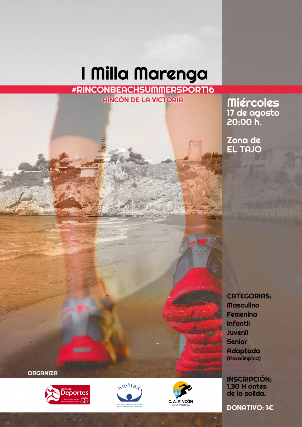17 AGOSTO: Carrera popular "I Milla Marenga". Salida a las 20:00 h. desde la Playa del Tajo (Rincón de la Victoria)