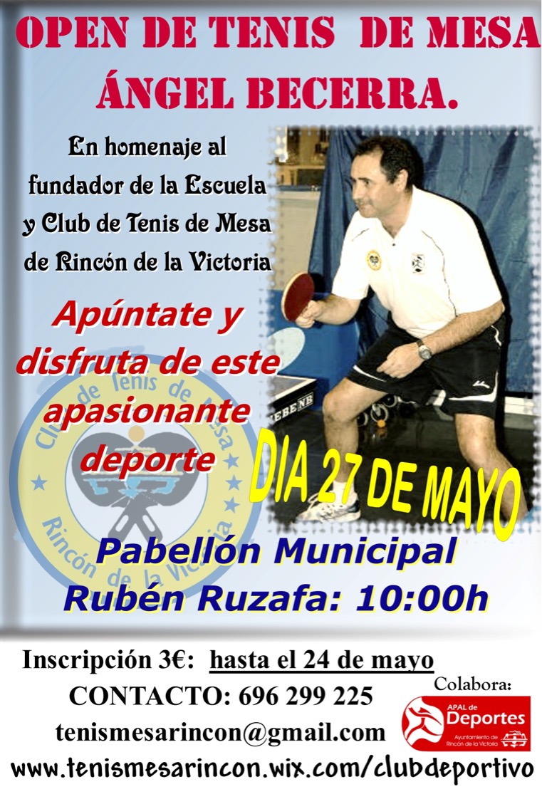 SÁBADO 27 DE MAYO: OPEN DE TENIS DE MESA ÁNGEL BECERRA