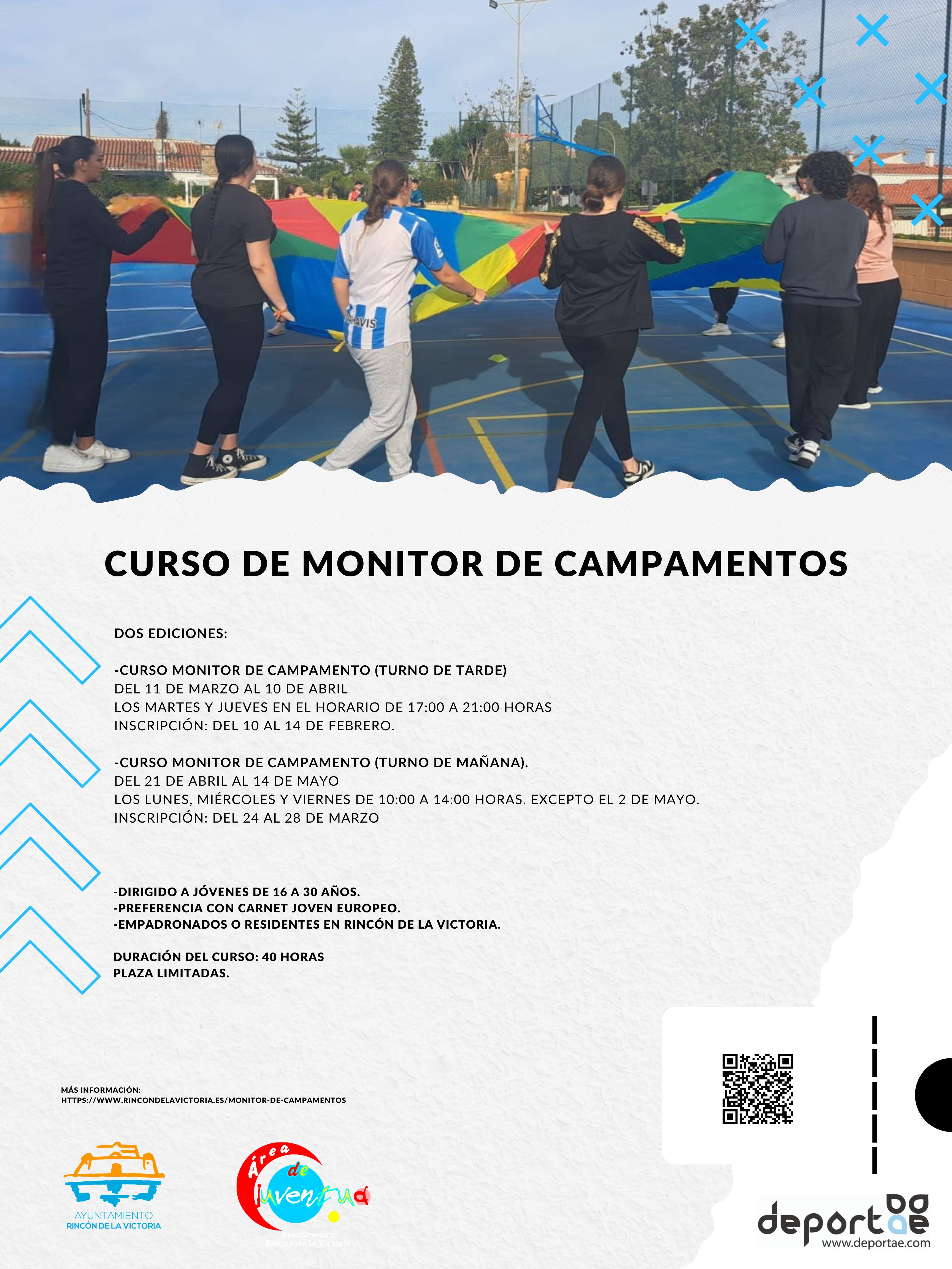 La acción formativa se impartirá en dos turnos; el primero en horario de tarde, y un segundo en jornada matinal. Las inscripciones se realizarán cumplimentando un formulario online que se encuentra en la siguiente dirección web: https://www.rincondelavictoria.es/curso-monitor-de-campamentos Los requisitos de participación son tener entre 16 y 30 años (ambas edades incluidas), estar empadronado en el municipio, y tendrán prioridad los jóvenes que sean titulares del Carnet Joven Europeo.