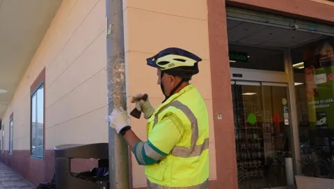 Las tareas comenzaron el pasado 18 de abril, “con una dotación de un servicio con operarios equipados con herramientas de raspado para eliminar los elementos adheridos, así como los restos de pegamentos”, explica el concejal del área, Borja Ortiz.