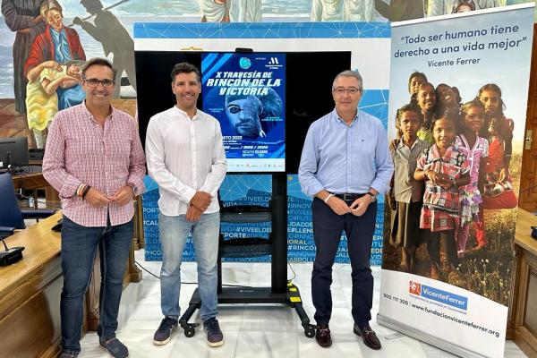 El alcalde de Rincón de la Victoria, Francisco Salado (PP), junto al concejal de Deportes, Antonio José Martín (PP), y el nadador Christian...