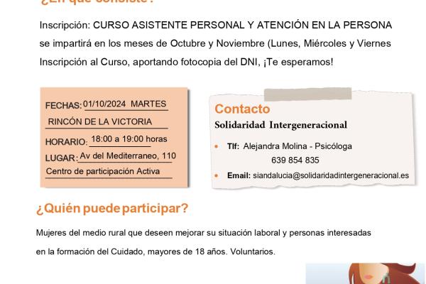 La Concejalía de Bienestar Social del Ayuntamiento de Rincón de la Victoria y Solidaridad Intergeneracional ponen en marcha el curso de Asistente...
