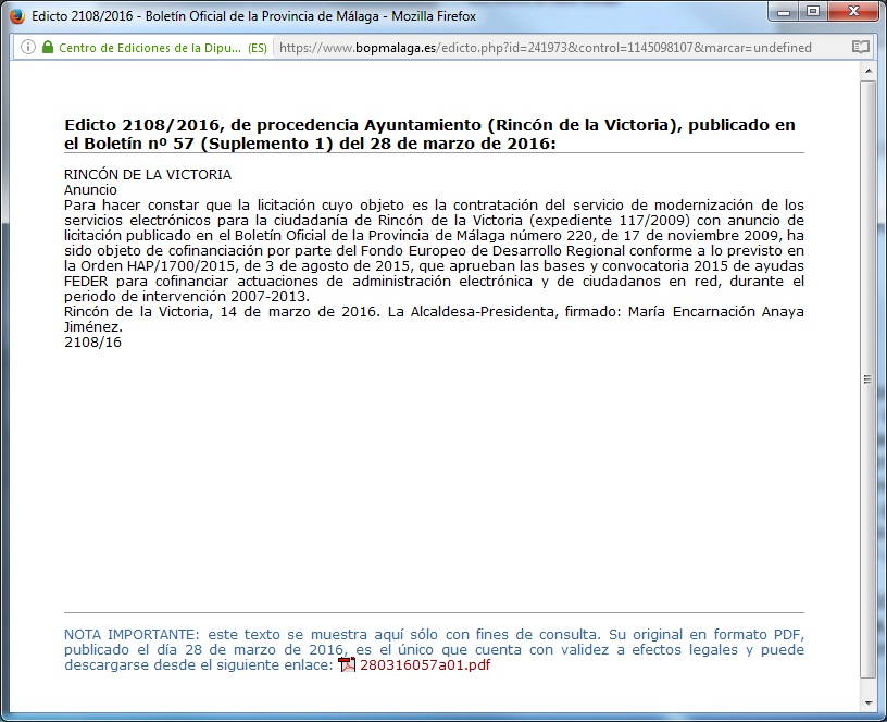 Con el fin de dar cumplimiento a la Ley 11/2007, de 22 de junio, de acceso electrónico de los ciudadanos a los Servicios Públicos, y para impulsar el desarrollo e implantación de la Sociedad de la Información en los servicios públicos para la ciudadanía y las empresas de Rincón de la Victoria, se ha puesto en marcha un gran proyecto de administración electrónica que contempla las actuaciones necesarias para garantizar la evolución hacia un modelo de administración digital.