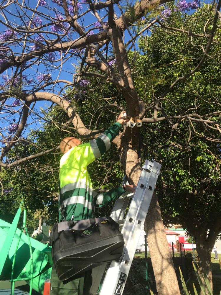 Las primeras actuaciones para prevenir y controlar las plagas se han centrado en los pulgones con presencia en los ejemplares de jacarandas del municipio a través del empleo del parasitoide Aphidius Coleman; además de alguna suelta puntual en rosales, tal y como indica Gómez, quien añade que esta lucha biológica está incluida en la Gestión Integral de Plagas como estipula la Ley del sector.