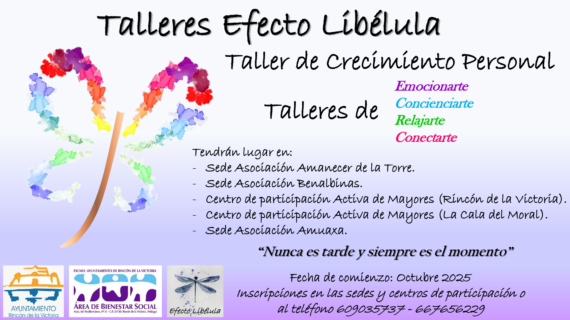 Se trata de los talleres para el crecimiento personal y gestión emocional dirigido a mujeres y hombres de todas las edades del municipio, que también acoge a usuarios del proyecto GRUSE derivados del Centro de Salud de Rincón de la Victoria. Las inscripciones gratuitas pueden realizarse en las sedes de asociaciones del municipio, o en los números de teléfonos: 667656229 y 609035737. Las clases comenzarán en el mes de octubre.