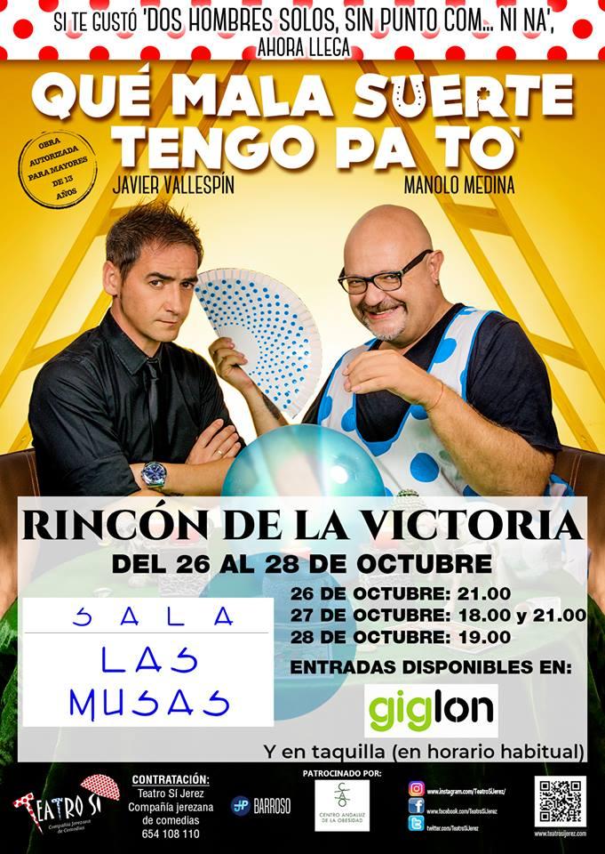 Una divertida comedia interpretada por Manolo Medina y Javier Villaespín que se representará en la Sala Las Musas, de la Cala del Moral, del 26 al 28 de octubre.