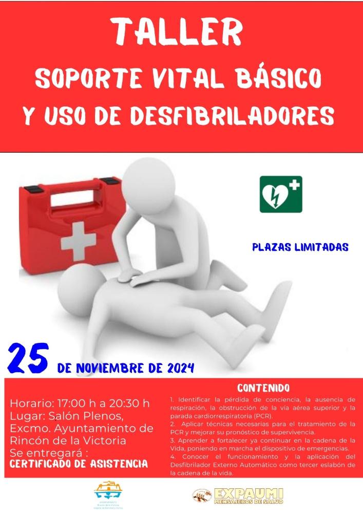 La formación gratuita se celebrará el lunes 25 de noviembre en horario de 17:00 a 20:30 en el salón de Plenos del Ayuntamiento. La Asociación de Expacientes de la Unidad de Medicina Intensiva del Hospital Clínico Universitario (EXPAUMI), será la encargada de llevar a cabo la acción que tiene como objetivo la adquisición de conocimientos sobre la práctica en reanimación cardiopulmonar (RCP) y el uso de desfibriladores (DESA). Las personas interesadas en participar pueden enviar sus datos personales al correo electrónico: sanidad@rincondelavictoria.es