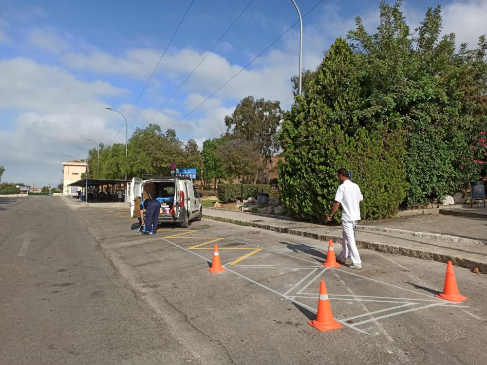 También se está realizando otro tipo de actuaciones como la reordenación y mejora de repintado de la señalización y estructura de sombra de las plazas de aparcamiento de La Cueva del Tesoro.